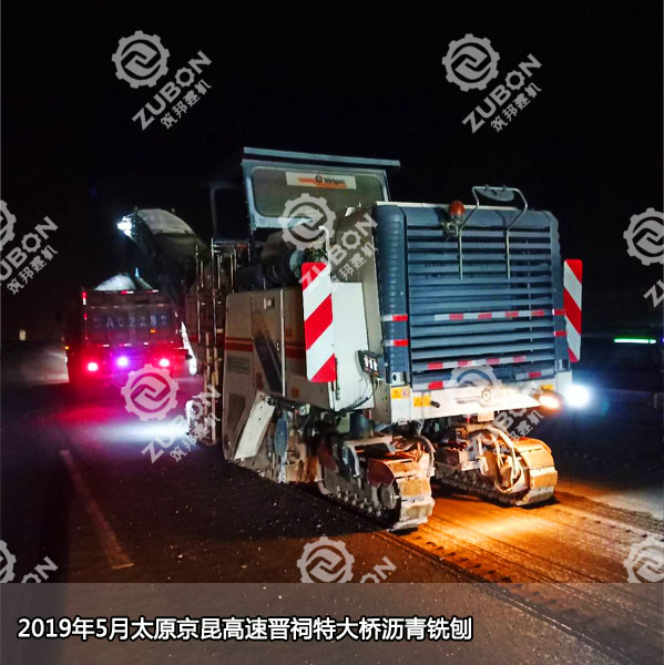 2019年5月12日,山西省京昆高速公路晉祠高架橋加固工程(K494+550—K498+550)開始進(jìn)行施工,此次橋面瀝青銑刨用到的是維特根2米銑刨機(jī)W2000,銑刨厚度9公分。2米銑刨機(jī)租賃