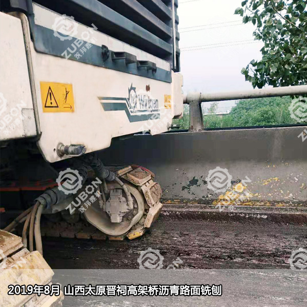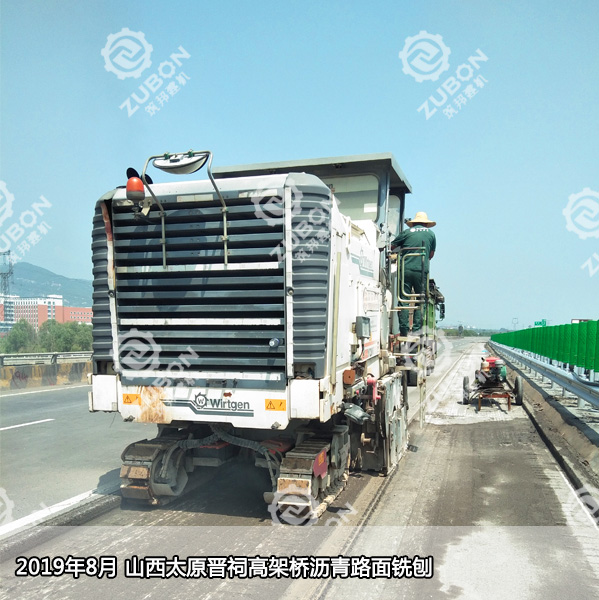 2019年8月,湖南筑邦維特根銑刨機(jī)W2000在山西省太原市晉源區(qū)晉祠鎮(zhèn)晉祠高架橋進(jìn)行瀝青路面銑刨施工,深度9CM.