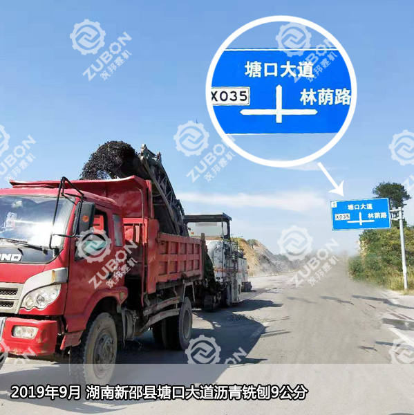 湖南新邵縣塘口大道位于邵陽新邵縣塘口村,是今年新修的一條的縣級公路。在新建時,公路底層瀝青鋪設(shè)不達(dá)標(biāo),現(xiàn)需重新銑刨去除原有瀝青層,重新鋪設(shè)。