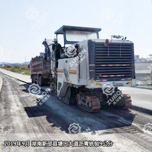 2019年9月,湖南新邵縣塘口大道瀝青路面銑刨9公分,施工機(jī)器維特根銑刨機(jī)W2000--2米銑刨機(jī)出租