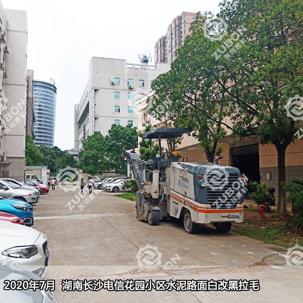 本周工程案例播報:2020年7月湖南長沙電信花園小區(qū)水泥路面白改黑拉毛。