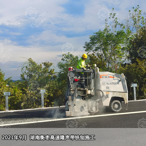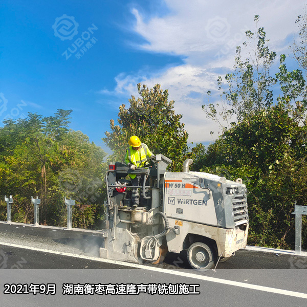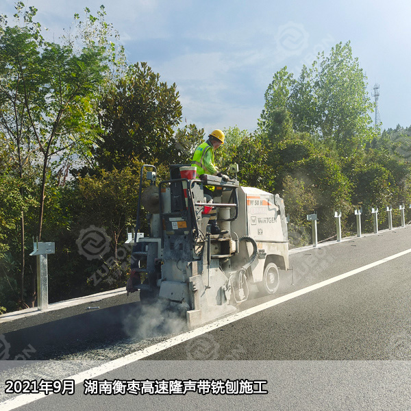 銑刨式隆聲帶一般設在行車道旁的路肩上,由一系列凹凸圓弧狀機構(gòu)形成,當汽車駛過隆聲帶時,輪胎產(chǎn)生噪聲并且引起汽車的振動,用聲音和震動來警告那些駛離行車道的司機,防止車輛跑偏引起的危險,對不熟路況、大意及疲勞駕駛的司機起到很好的提醒和警示作用,防患于未然,減少交通事故的發(fā)生率,為高速公路的安全暢通提供強而有力的保障。